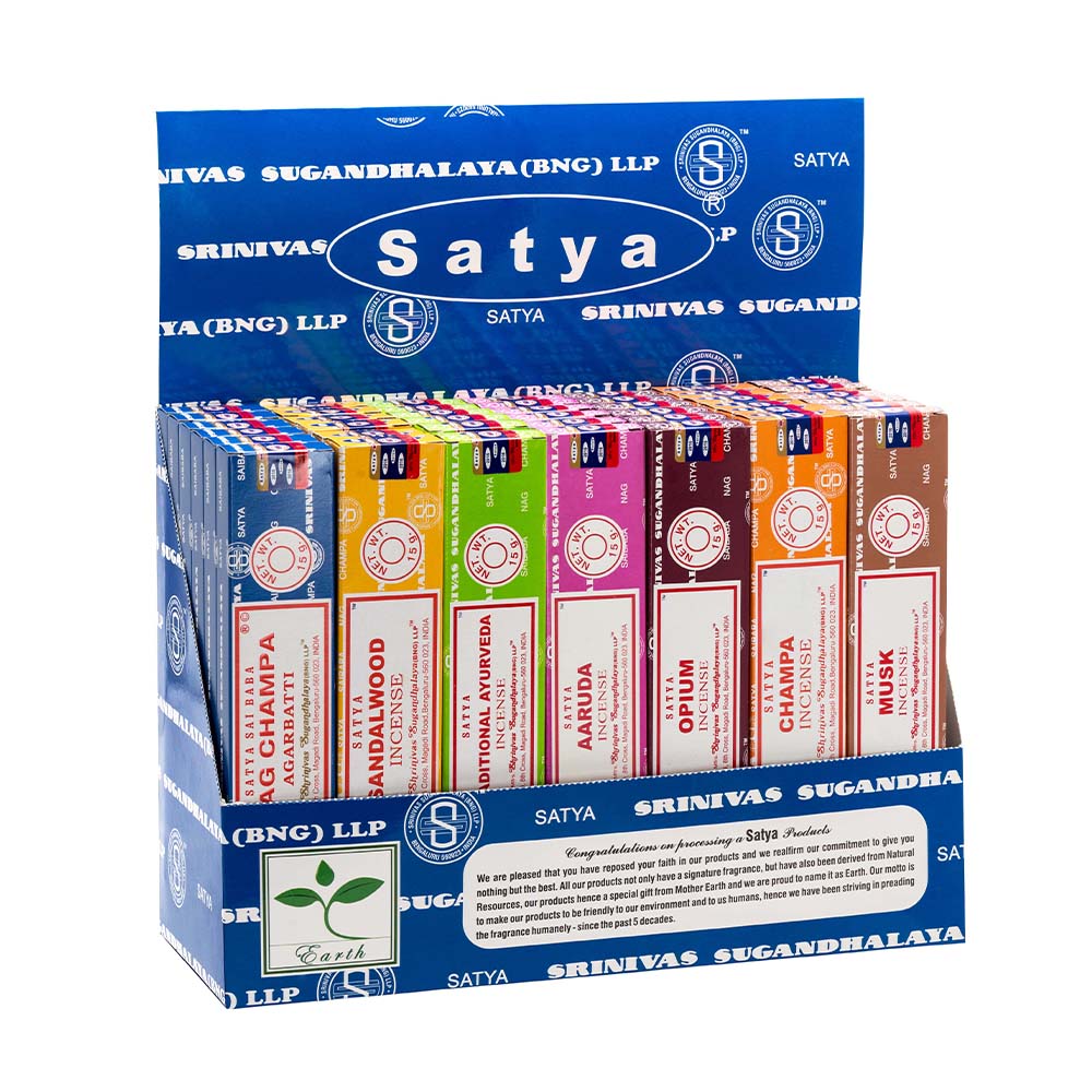 Satya Assorted 15 Gms (3.5 Doz Display – 42 Pcs) — это полный ассортимент ароматов, собранных в одном наборе. Такой комплект подходит для магазинов, йога-студий и больших семей. Каждый аромат создан для уникальной атмосферы — от релаксации до вдохновения. Натуральное производство гарантирует безопасность и качество. Этот набор позволяет наслаждаться богатством индийских традиций ежедневно.